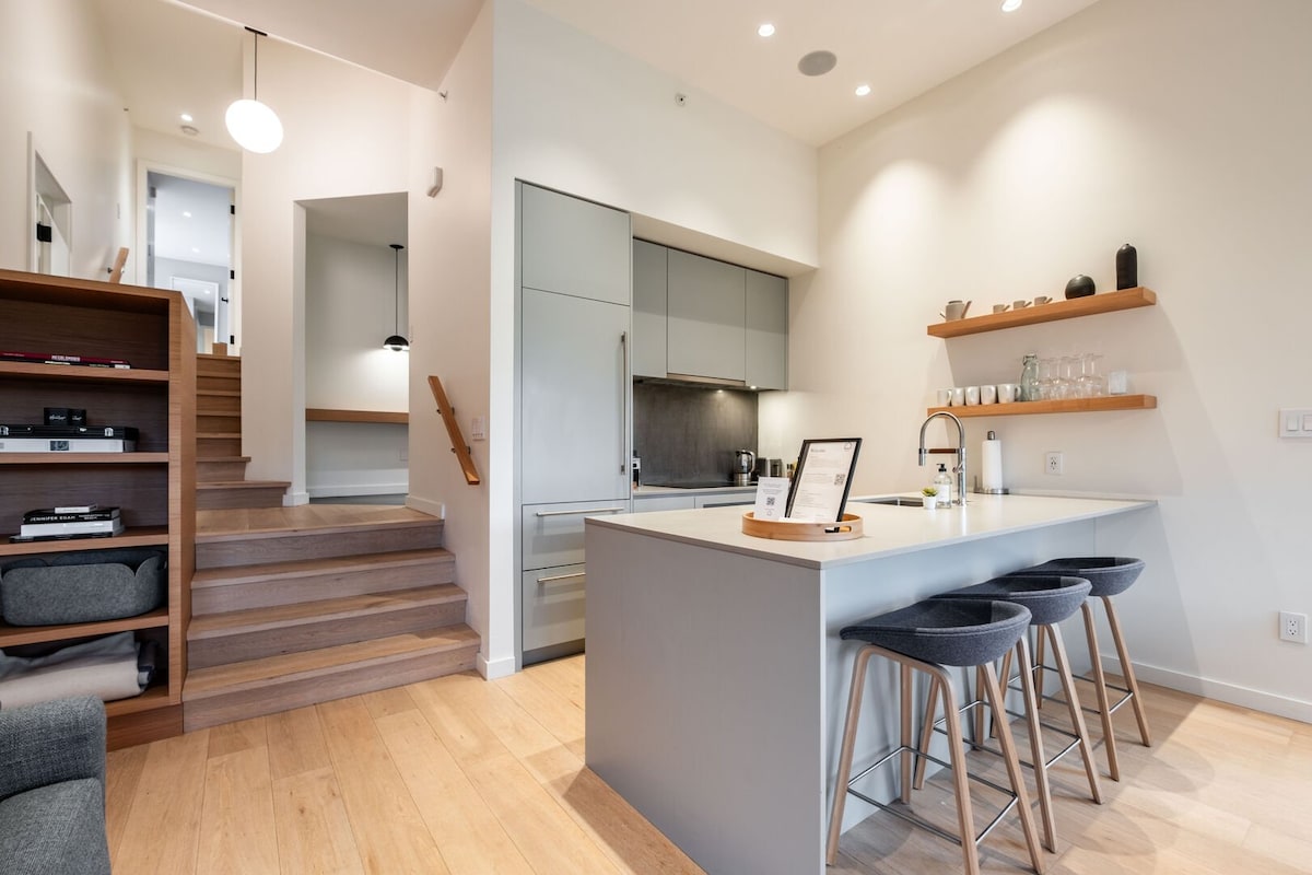Nije rezač kolačića! Moderan, RENOVIRAN, svetao, otvoren raspored. Koraci do svega u selu, ali dovoljno daleko od vreve i vreve kako biste osigurali dobar noćni odmor. 9ft plafoni, veliki prozori, kamin na gas + drveni podovi. Spavaća soba ima Kingsdown dušek + novi dnevni (2024.) kauč (visoke gustine) uparen sa visokokvalitetnim jorganima/posteljinom. Velika terasa sa roštiljem Weber. 4k TV u dnevnom boravku I spavaćoj sobi sa kablovskom/Netflix/Wi-Fi, BESPLATAN osiguran parking, vešeraj, 13 minuta hoda ili autobusom do liftova.