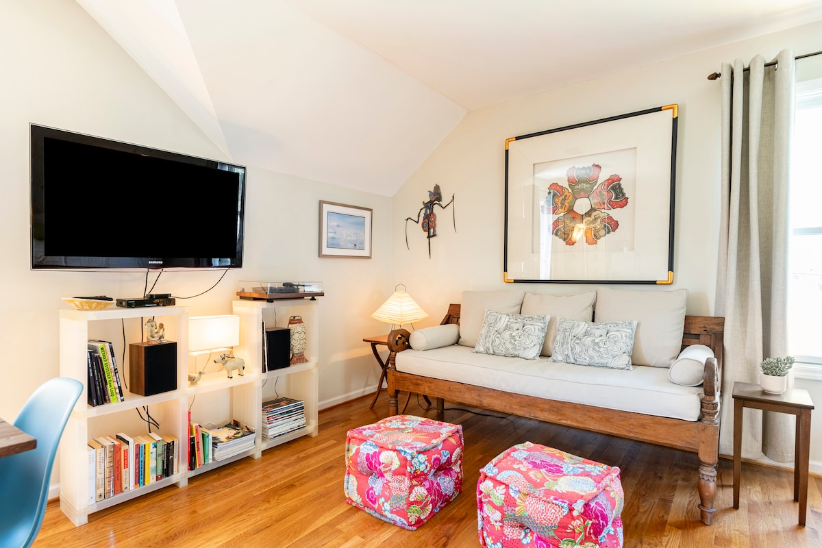 Arhitektonski pregled je odabrao najbolji Airbnb u Kentakiju. Uronite u zaobljenu, pregrađenu fotelju ispod izloženih drvenih greda u šarmantnom utočištu sa minimalnim, modernim stilom. Ovaj istorijski prostor je u kontrastu sa deluxe detaljima, uključujući kadu od 2 metra sa kliznim prozorima i kliznim vratima ambara. Ovaj potpuno namješten stan je savršen za vikend za odmor ili za kratak i srednji smještaj kao izvršni stan. Istorijski objekat je s ljubavlju renoviran kao luksuzni stan sa vrhunskim završnim obradama, zadržavajući istorijski karakter svoje prošlosti kao kočije. U stan ulazite kroz hodnik u kojem se nalazi posebna mašina za pranje i sušenje veša. Na spratu se nalazi veliki dnevni/radni prostor, prelepu kuhinju sa potpuno novim aparatima i 4K pametni TV od 50inča. Klizna vrata ambara razdvajaju spavaću sobu, gde ćete naći i veliki ormar, mermerno kupatilo sa kadom od 2 metra i potpuno novi dušek veličine kraljice. Sastaćemo se sa gostima i uputiti ih na kuću i komšiluk ili ćemo vam obezbediti mogućnost samostalnog dolaska u zavisnosti od opcija. Za ostatak vašeg boravka, bićemo u blizini za sve dodatne potrebe. Čeroki Triangl je jedan od najistorijskijih delova grada u Luivilu, izgrađen krajem 19. veka i deo šireg planinskog područja. Ulice sa drvoredima su nedaleko od restorana, barova i butika u ulici Bardstaun. Ne treba vam automobil u blizini - sve je udaljeno samo nekoliko minuta hoda. Parkovi, restorani, prodavnice, prodavnice su na 5 minuta hoda. Centar grada ili Čerčil Dauns je udaljen 5-10 minuta vožnje. Parking na ulici je dostupan.