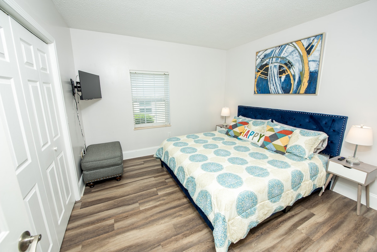 Neka bude jednostavno u ovoj mirnoj i centralno lociranoj jedinici. Ima otvoreni tlocrt i veliku kuhinju. Kupatilo je nedavno renovirano. Svi dušeci i posteljina su potpuno novi sa 100% pamučnim čaršavima. Prevelika, super udobna kožna sedišta. Naš otvoreni raspored čini ovu jedinicu odličnim za noćne igre, velike obroke i veliku ZABAVU. TV u svakoj sobi i besplatan internet od 5 g. Roštilj na drveni ugalj je na raspolaganju, kreveti na sprat su pune veličine. Gost mora da ima 21 godinu da bi mogao da iznajmi smještaj.