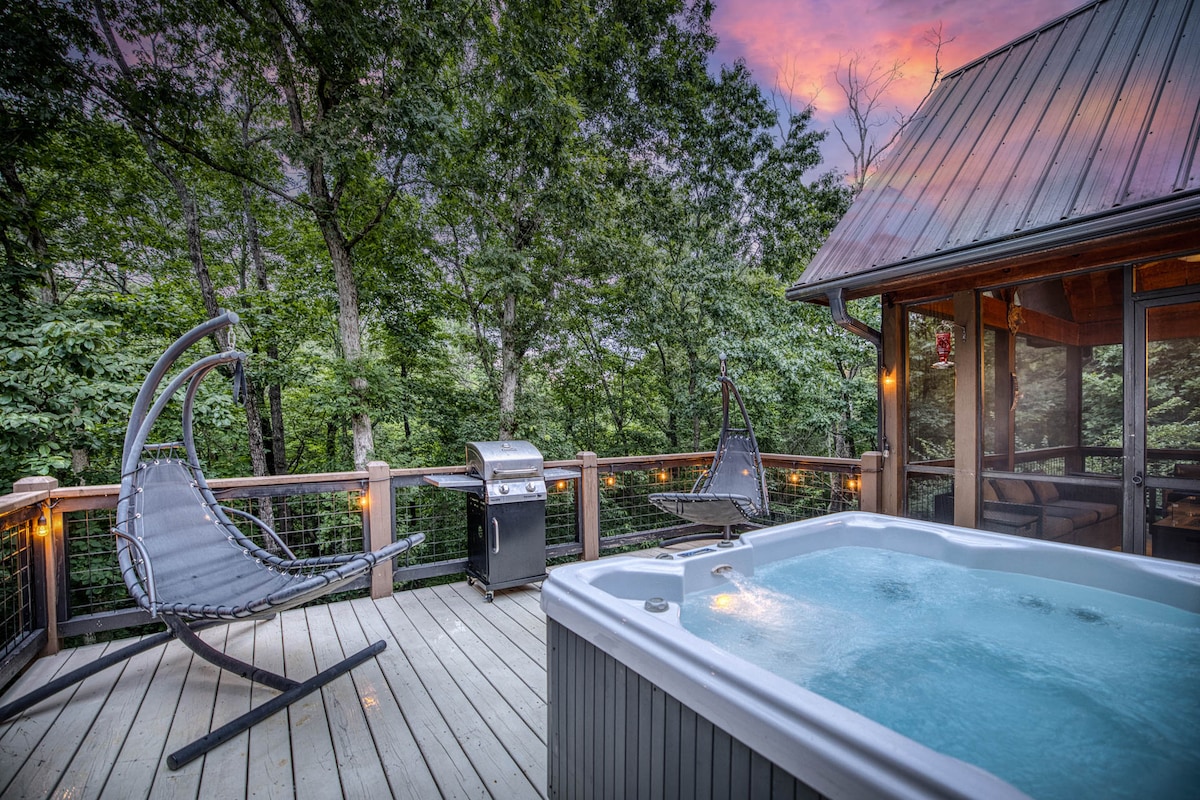 Dobro došli u brvnaru High Hopes, romantični odmor u planinama Blu Ridž. Samo 10 minuta od Blu Ridža i 15 minuta od Elijaja, ovo moderno 2BR/2.5BA utočište je dizajnirano za parove koji traže luksuz, osamu i nezaboravne poglede. Posmatrajte izlazak sunca sa svake terase, uživajte u privatnoj hidromasažnoj kadi pod zvijezdama i udobno se smjestite pored kamina na drva. Bilo da se radi o godišnjici, medenom mjesecu ili prijeko potrebnom odmoru, ova brvnara postavlja pozornicu za uspomene koje traju.