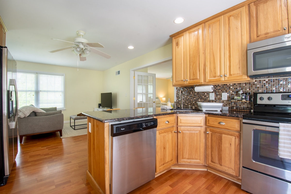 Dvije milje od Longvud Gardensa i šest od muzeja Winterthur i Brandywine River, stan se nalazi na idealnoj lokaciji za istraživanje lokacija u dolini Brandywine i istorijskog trga Kenet. Smješten u bašti s pogledom na livadu i konje sa divljim cvećem, nudi prostranu spavaću sobu i kupatilo, udobnu kuhinju/dnevni boravak i mašinu za pranje/sušenje veša. Moderan je, izuzetno čist, udoban i privatan - idiličan seoski bijeg.