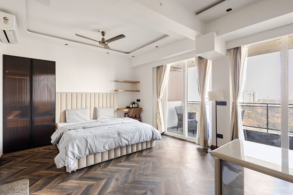 Experience a modern, cozy studio at M3M One Key Resiments – Sector 67, designed for comfort, safety, and stylish living. Enjoy a zero gravity and anti snore mode vibrating massage bed for your relaxation, warm décor, a romantic balcony, and all essential amenities. Perfect for couples, solo travellers, and business guests seeking a peaceful yet premium stay with access to M3M’s common areas which includes in house dining, swimming pool, pool table, marketplace, many more.