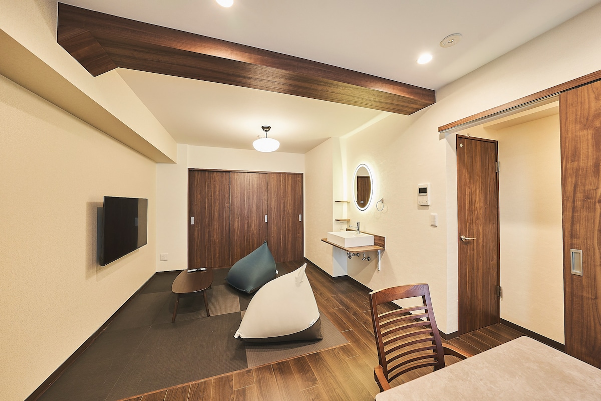 * Površina sobe 70 kvadratnih metara * Zapadnjačka soba za 4 osobe ima 2 standardna bračna kreveta (147 * 200 cm) Muji krevet od punog drveta * Japanska soba za 4 osobe sa 2 standardna bračna kreveta (147 * 200 cm) i Muji dušekom * U otvorenom japanskom prostoru mogu se dodati dva dodatna kreveta (dodatni krevet 2000 jena) Ova soba ima prostranu kuhinju i trpezariju, što je odlično mesto za porodicu da se okupi kada putuje * TOTO kupatilo, udobna kada, WC šolja, umivaonik, idealno za kupanje nakon celodnevnog putovanja, da se opustite i osvežite, kao kod kuće!
