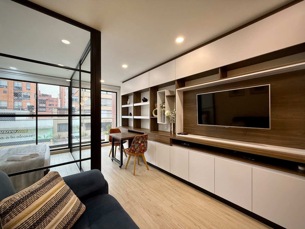 Brand new apartment with an amazing view over Bogotá and the mountains from an eight Floor. A modern, Nordic and minimalist style with a cozy private terrace perfect for Bbq and gathering with friends or couple. Central location, close to Usaquen market and restaurants, easy access and transportation. The perfect choice for a single person or a young couple. The apartment has 1 Bedroom, 1.5 Bathrooms and includes Washer/Dryer Machine and Fridge, private parking and Security 24 hours.