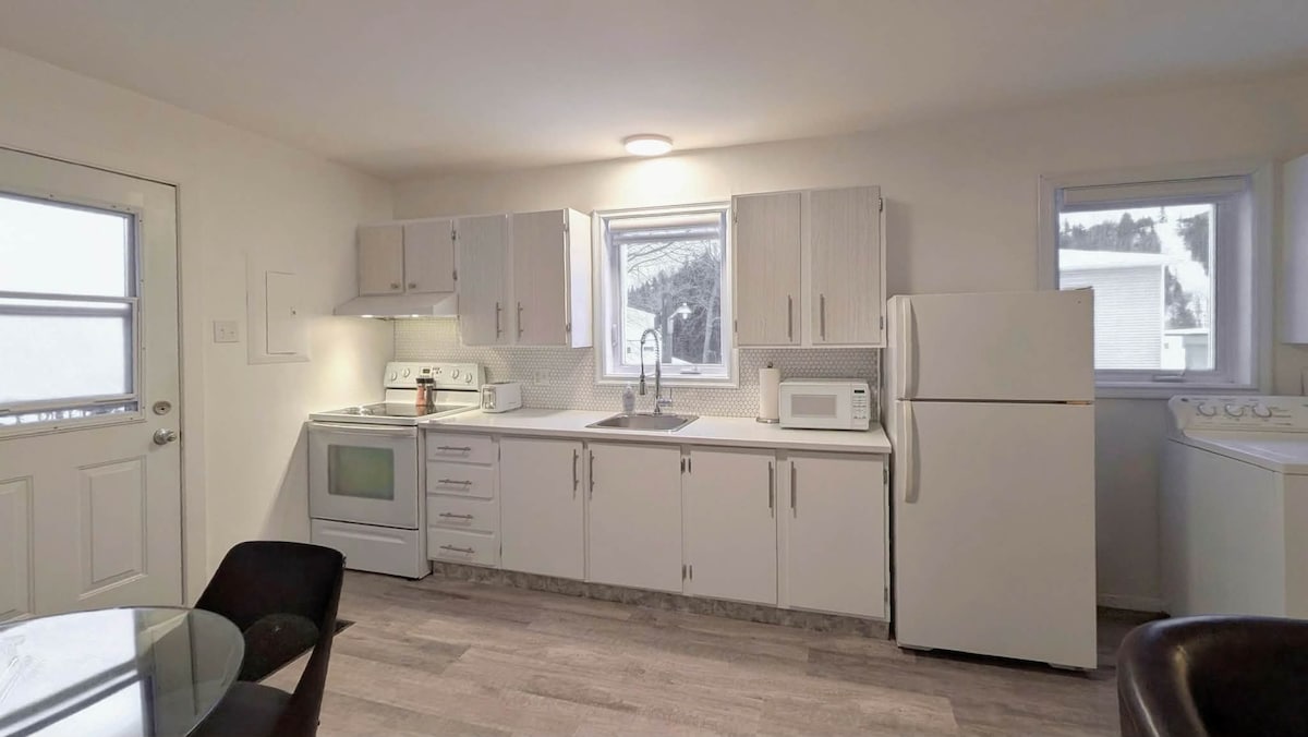 Udoban stan za najmanje 4 osobe. Mogućnost smještaja još jedne osobe za višak.(30 $. $ dodatno po noćenju ) Treća soba uključuje krevet za kampovanje) Vrlo blizu centra grada i nekoliko minuta hoda od prodavnice i oko 10 minuta hoda od centra grada gdje se nalazi mnogo restorana, prodavnica, kafića, SAQ itd. Jednostavan pristup biciklističkoj stazi.