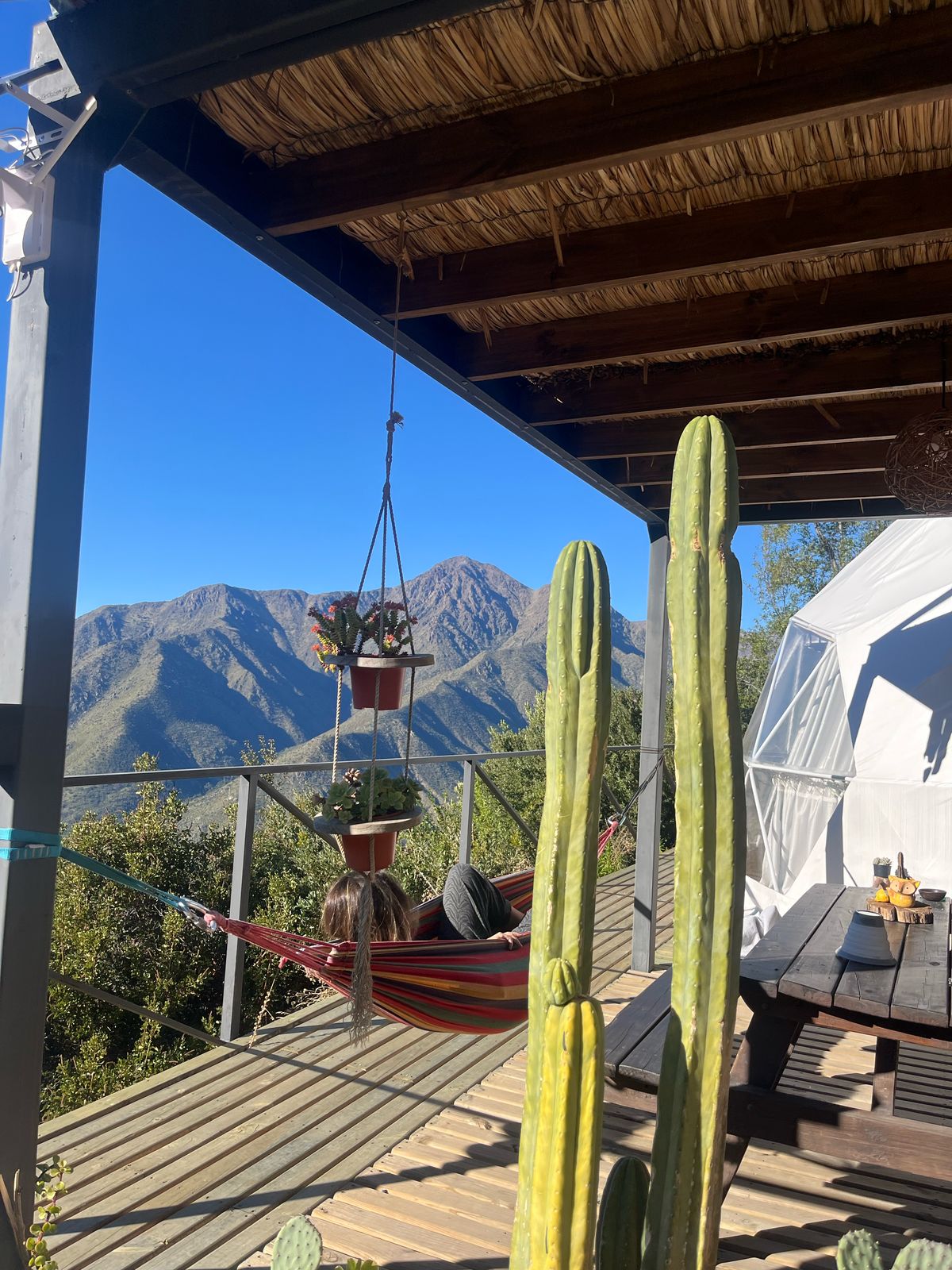 Quimsa Glamping Domo es el espacio ideal para re-conectar con la naturaleza. Ubicado entre las montañas del cajón del Maipo y rodeado de bosque nativo esclerófilo, este Domo Eco-sustentable ofrece una vista inigualable y una experiencia Glamping que fusiona la conexión con el entorno natural pero con las comodidades de un confortable lugar. Ideal para descansar y relajarse, contemplar la flora y fauna nativa y cargarse con la energía de la cordillera de los Andes.