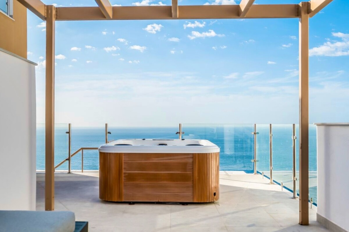 Doživite nenadmašan pogled od 180 stepeni na Sredozemno more u savršenom južnom položaju. Započnite dan šoljicom kafe na prostranoj terasi dok sunce izlazi, a zatim dopustite da vas sunčevi zraci prate tokom dana. Uživajte u najveličanstvenijem beskonačnom bazenu od 25 metara u Nerji. Klima uređaj i podno grejanje u svim sobama. 2 spavaće sobe, 2 kupatila, 2 velike terase, Weber roštilj i kuhinja u modernom luksuznom stilu. Zajednička teretana, unutrašnji bazen i sauna koji su dostupni od oktobra do aprila.