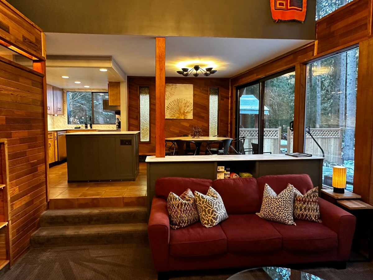 Lagom: Švedski za „ne previše, ne previše“...ova brvnara je baš prava. Lagom brvnara kombinuje udobne, PNW kabine sa skandinavskom jednostavnošću (uključujući kamin direktno iz Norveške!) Nedavno renoviran i prikladan za pse. Veliki otvoreni dnevni boravak i namenska kancelarija (radite ujutru i skijajte popodne!) Nalazi se u mirnoj, ograđenoj zajednici Glacier Rim, što je bliže planini. Skijaško područje pekera. Sakriveno među drvećem, tako da skoro ne biste znali da je tamo.