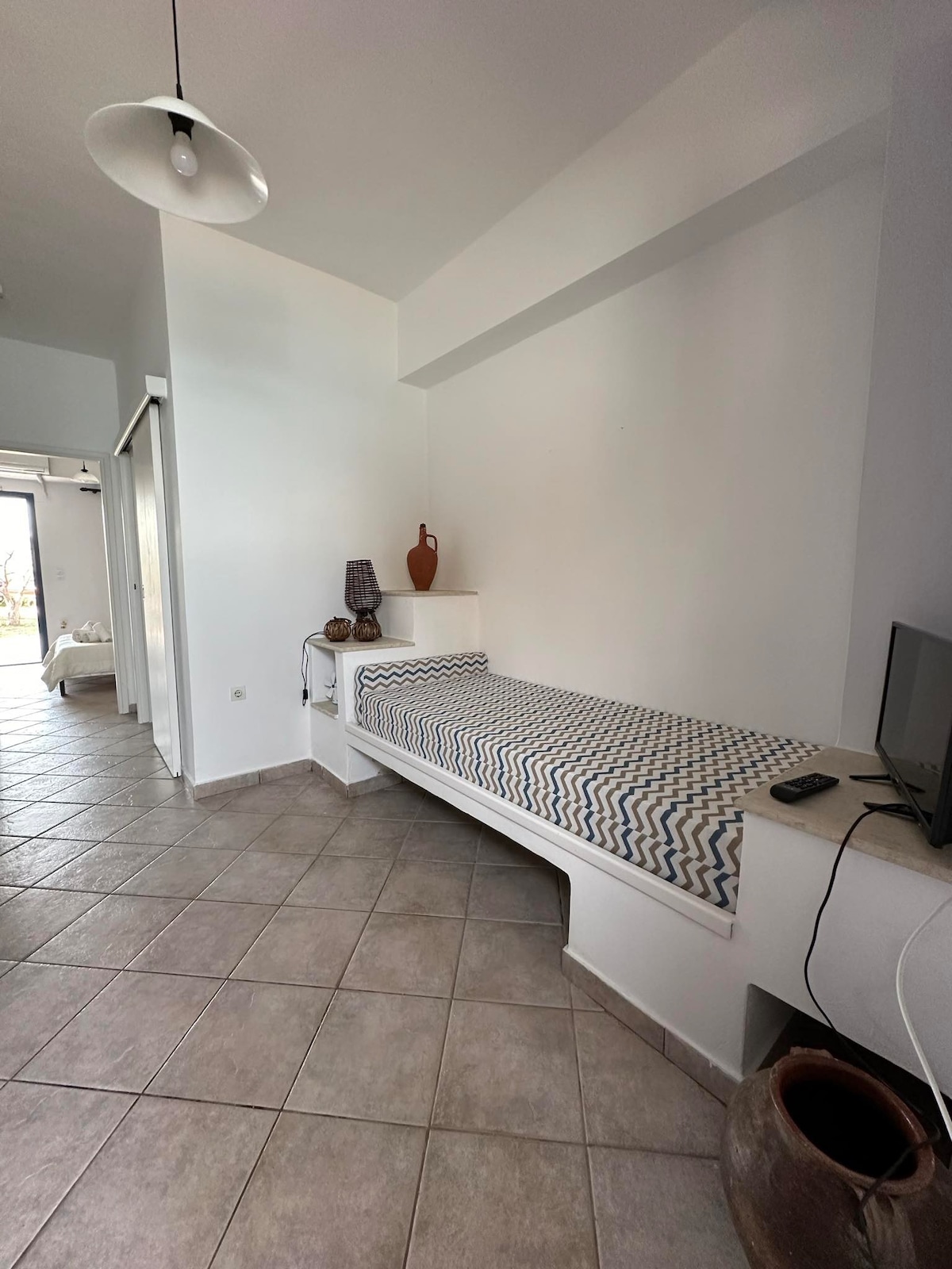 The two-room apartment is a beautiful family-friendly beach home in the town of Komi, exactly opposite the sandy beach with no cars passing by. Komi is in the southern part of the island of Chios in an area called Mastichochoria (i.e mastic villages). It is a very quiet beach on a daily basis except from the weekends as it becomes popular due to the restaurants and bars. The apartment is comfortable and has got everything to make your stay enjoyable.