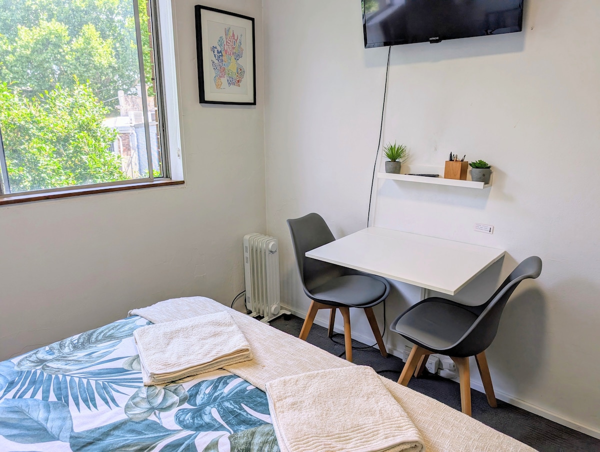 Lush, relaxed Chippendale Studio - perfect for solo travellers and couples! Just a short walk to Sydney CBD, Chinatown, Spice Alley, Central Station🚶 Bright room with comfy Queen bed, fold-down desk, TV & leafy views ☀️ Kitchenette for simple meals. Clean bathroom 🧑🍳 Explore local galleries, cafes, top restaurants 🍽️ Near UTS, Syd Uni, Central Park Mall 👨🏻🎓🛍️ Wi-Fi, fresh linens & towels provided. Charming decor. Your vibrant Sydney base awaits! 🏠