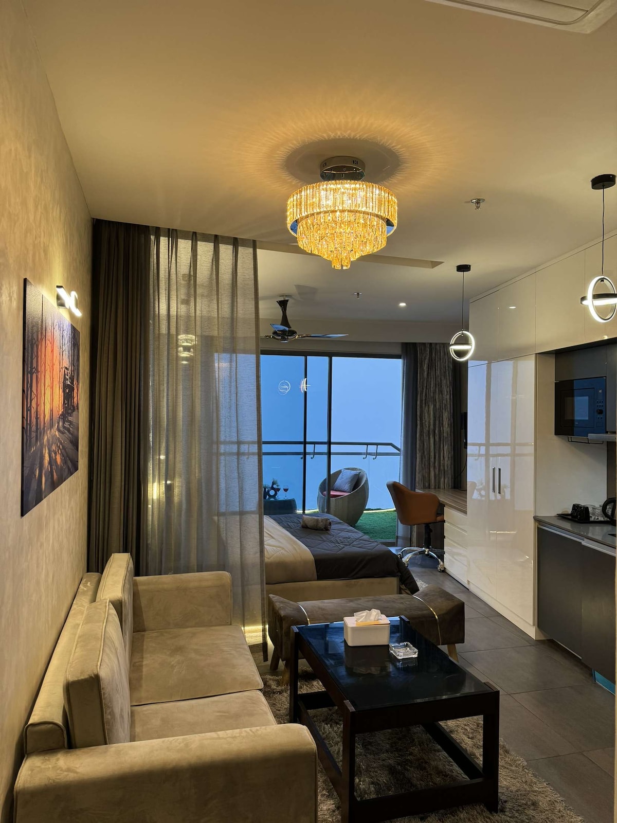 Opustite se u ovom mirnom i elegantnom prostoru. Kompaktan i udoban studio Stan na glavnoj lokaciji šire Noide