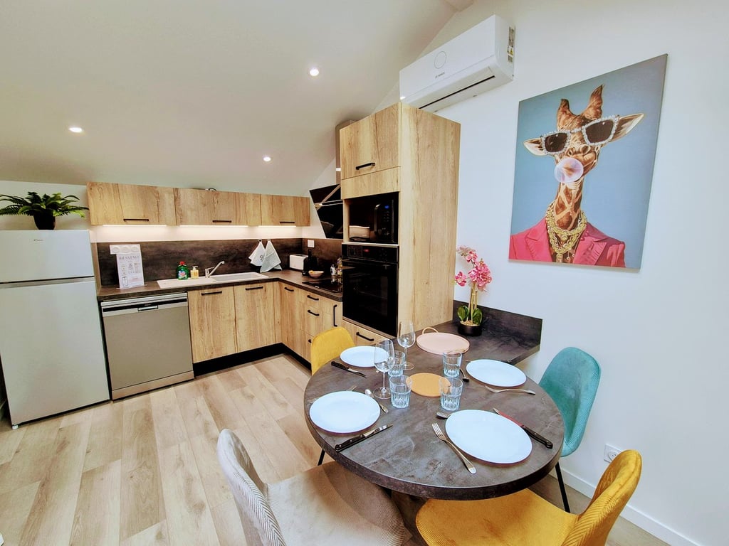 ✨Dobrodošli u L'Atelier des Vieux Greniers, udoban studio u središtu Šolea, pažljivo uređen u modernom i industrijskom stilu. 📍Odlična lokacija: Nalazite se u samom centru grada sa brzim pristupom prodavnicama, restoranima i prevozu. 🛋️ Studio je u prizemlju u okviru spomenute zgrade Vieux Greniers. Nalazi se u mirnoj ulici i ima svu potrebnu opremu za vašu udobnost i dočekaće vas u odličnoj čistoći.
