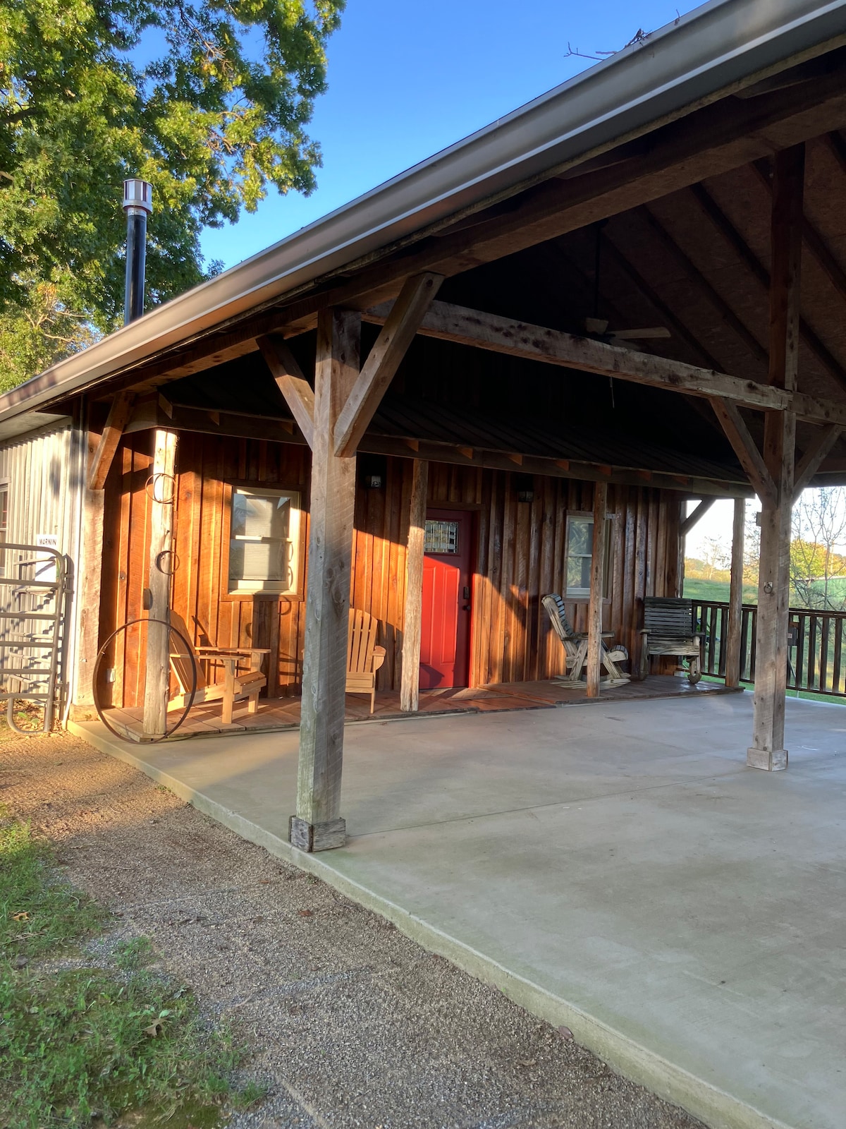 Gosti vole mir i pogled ovdje u našem utočištu. Uživajte u jutarnjim ili večernjim satima u hidromasažnoj kadi, sunčajte se na terasi bazena i plivajte po toplom vremenu. Opustite se pored kamina ili ognjišta (ispecite sendviče). Prošetajte imanjem da vidite kokoške, konja, magarca i koze. Na našoj farmi volimo raznolikost, podržavamo sve oblike ljubavi i ne mislimo da mržnja čini Ameriku velikom – ako se ne slažete, možda nismo pravo odredište za vas. Dodali smo malu stolicu koja se pretvara u krevet – možemo da uguramo 3 osobe.