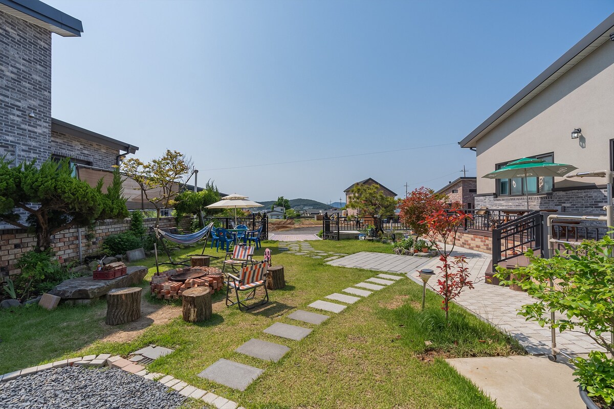 Toplina drveća i zelenilo travnjaka „The Roverstay“ Razmišljam o vremenu provedenom s djetetom Kuća je ručno uređena od strane para u tridesetim godinama. (Standardne 2 osobe/Najviše 6 odraslih osoba, do 8 osoba, uključujući djecu do 2 godine) (Zbog mirne prirode sela, tražimo prekomjernu buku u dvorištu.) Kao privatni smještaj, možete u potpunosti da uživate u prostoru. Na raspolaganju su bazen, kupatilo na otvorenom i drveno igralište. * Bazen je otvoren od juna do septembra (nema kontrole temperature) Tišina seoske kuće povećala je modernu praktičnost, a istovremeno očuvala tišinu sela. Nadam se da ćete stvoriti dragocjene uspomene uz udobnost prirode u ovom prostoru. Rustikalni život na☑️ selu Gamseong Stolovi za okretanje☑️ emocionalnog LP-a ☑️Netflix/YouTube Premium ☑️Roštilj (30.000 KRW) * Ugalj, roštilj, rukavice, baklja su obezbijeđeni ☑️Ognjište (20.000 vona) * Obezbijeđeno je 10 kg drva za ogrev Kupatilo ☑️na otvorenom (50.000 KRW) ☑️Otvoreni bazen (besplatno) * Bazen je otvoren od juna do septembra Opremljen pješčanim ☑️igralištem za djecu ☑️Mirna i privatna privatna kuća