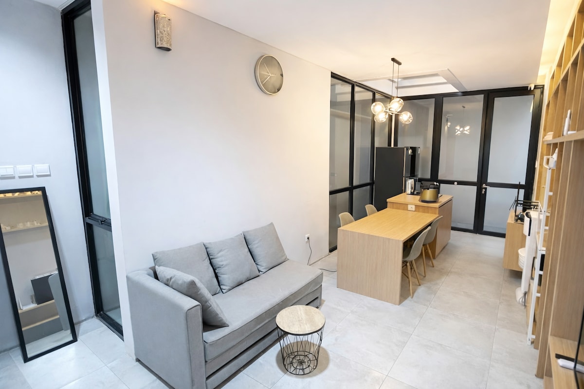 U blizini JIEXPO-a i JIS-a, naš studio u stanu Maplepark nudi modernu udobnost, brzi internet i Netflix. Raspored otvorenog tlocrta odlikuje se elegantnim namještajem, obiljem prirodnog svjetla i besprekornim radnim prostorima i prostorima za spavanje. Dobro opremljena čajna kuhinja i plišani prostor za spavanje osiguravaju udobnost i praktičnost. Uz jednostavan pristup događajima i privatni balkon s pogledom na bazen, ovaj studio kombinuje urbanu sofisticiranost sa prijatnim šarmom, što ga čini savršenim domom u srcu Džakarte.