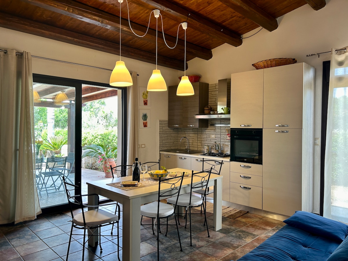 Casa in legno e muratura con affaccio su un agrumeto, con una bella piscina, situata in una posizione comodissima a tre km dal centro di Noto, sulla strada dalla quale si raggiungono le spiagge della Riserva Naturale di Vendicari i. Casa con 2 camere da letto, 2 bagni, cucina con sala pranzo, zona TV con divano, terrazza privata attrezzata con tavolo, sedie e zona salotto, aria condizionata, Wi-Fi, Tv satellitare, lavastoviglie. Lavatrice in comune con altra casa.
