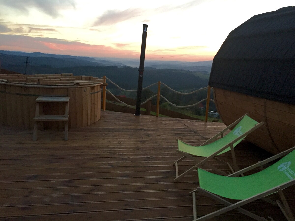 Pozivamo sve koji vole planine, pogled koji oduzima dah i idilične vibracije u View Lodge u Istebni. Naša brvnara može da se smesti 12 ljudi. U prizemlju se nalazi prostrani dnevni boravak sa kaminom, trpezarija, čajna kuhinja i kupatilo. Potkrovlje ima 4 spavaće sobe i drugo kupatilo. Gosti imaju ekskluzivan pristup sauni i hidromasažnoj kadi na otvorenom s pogledom na planine, ognjištu i sjenicu sa roštiljem. Naknade:sauna 300zł, hidromasažna kada 500 PLN, naknada za psa 200zł. (depozit 1k).