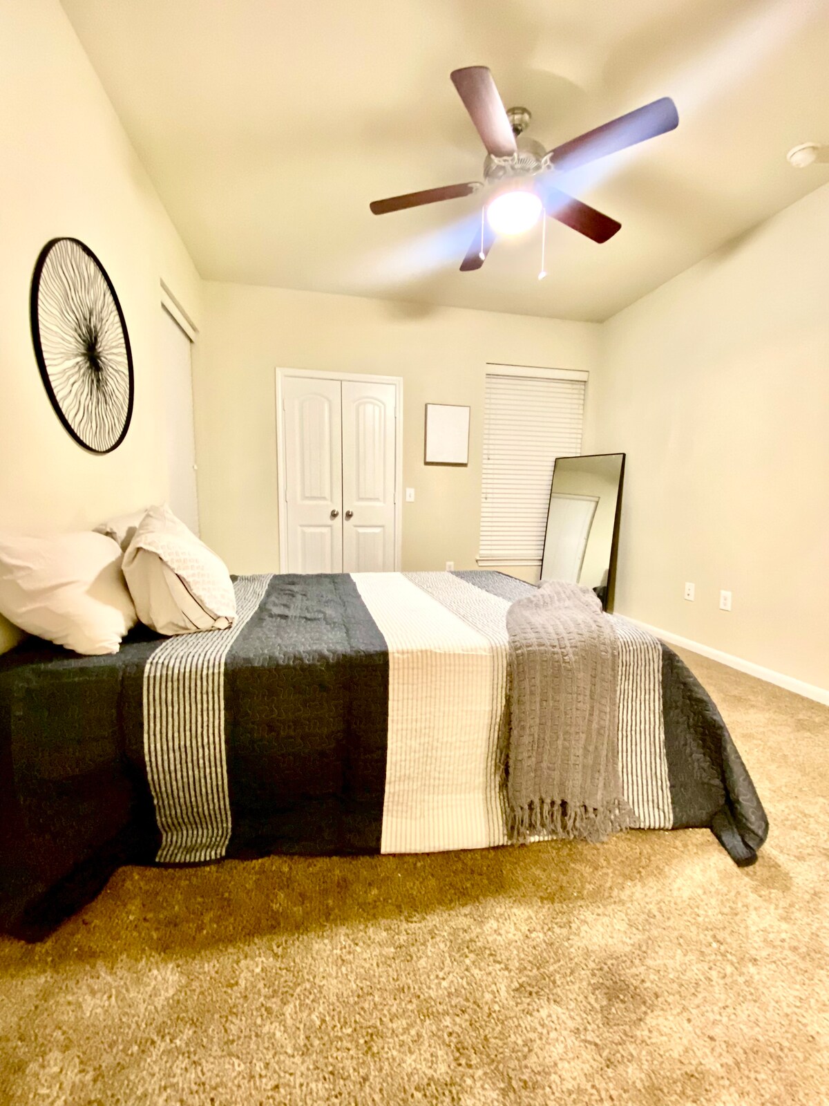 Enjoy the luxury Helix mattress, morning coffee, private balcony, spacious closets, garden tub, and in-home laundry. A pack-n-play is provided and fits well in a private, cozy nook off the living room. Enjoy the pool, grills, clubhouse, business center, and 24-hour gym. **Parking = during business hours you can park inside the gate, but outside of business hours you must park outside the gate, only a 2-minute walk from the apartment.**