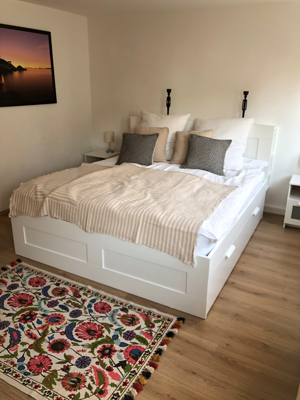Vaš dom usred starog grada !!! Upravo smo potpuno renovirali kvalitetan i udoban studio apartman površine 30 m2. Pored prostora za spavanje sa visokokvalitetnim krevetom na razvlačenje, naći ćete veliko kupatilo i dnevni boravak sa otvorenom kuhinjom. Stan je opremljen svime što vam je potrebno za boravak kod nas u Nirnbergu. Zbog svoje lokacije u sporednoj ulici, stan je takođe veoma tih.