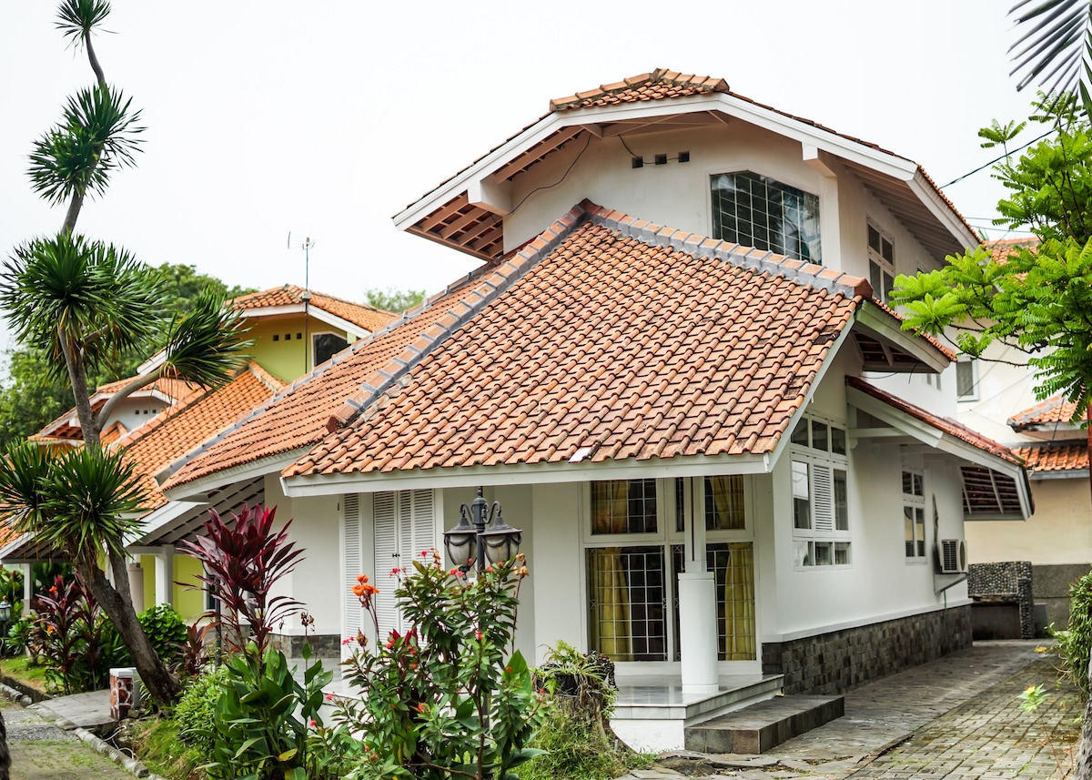 Otkrijte autentičnu Indoneziju boraveći daleko od turističkih mesta. Ova prelepa vila ima dva sprata, baštu sa drvetom manga, terasu i garažu za automobil i bicikle. Okružena zelenilom, kuća je osunčana ceo dan i dobro provetrena, a nalazi se u veoma mirnom kraju u blizini centra grada (na sat vremena vožnje od Džakarte). Prizemlje je potpuno opremljeno, dok je prvi sprat delimično opremljen jer je opremljena samo jedna spavaća soba na spratu.