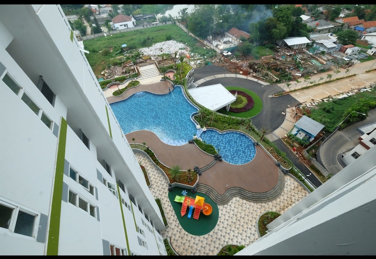 Ovaj pogodno pozicionirani objekat nudi najbolji doživljaj. Ovaj studio se nalazi u Bintaro CBD-u i nudi stratešku lokaciju, pogodnost i zadovoljstvo za život i rad od kuće ili u okolini. Tu su i bazen i teretana. Garsonjera je nova i potpuno namještena. Imamo i Netflix. Zgrada je povezana sa tržnim centrom Transpark Bintaro. Ilegalne aktivnosti kao što su prostitucija, spolna trgovina i trgovina drogom nisu dozvoljene. Pembayaran hanya melalui Airbnb.