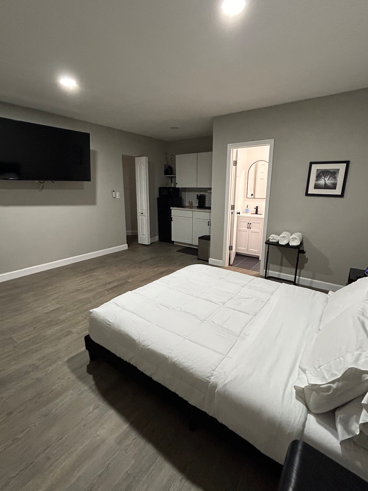 Opustite se u ovom mirnom i elegantnom prostoru. To je fantastičan i veoma privatan stan da provedete predivan odmor ili da radite svoj posao, sve pogodnosti privatnog apartmana, ima bračni krevet, kupatilo, kuhinju, ormar i radni sto, Wi-Fi brzi internet, 55 "Smart TV, IPTV kanale, uslugu kastinga, aparat za kafu da biste uživali u dobroj kafi ujutru. Samo nekoliko minuta od tržnog centra, aerodroma, bioskopa, restorana i drugih atrakcija Sanšajn Stejt.