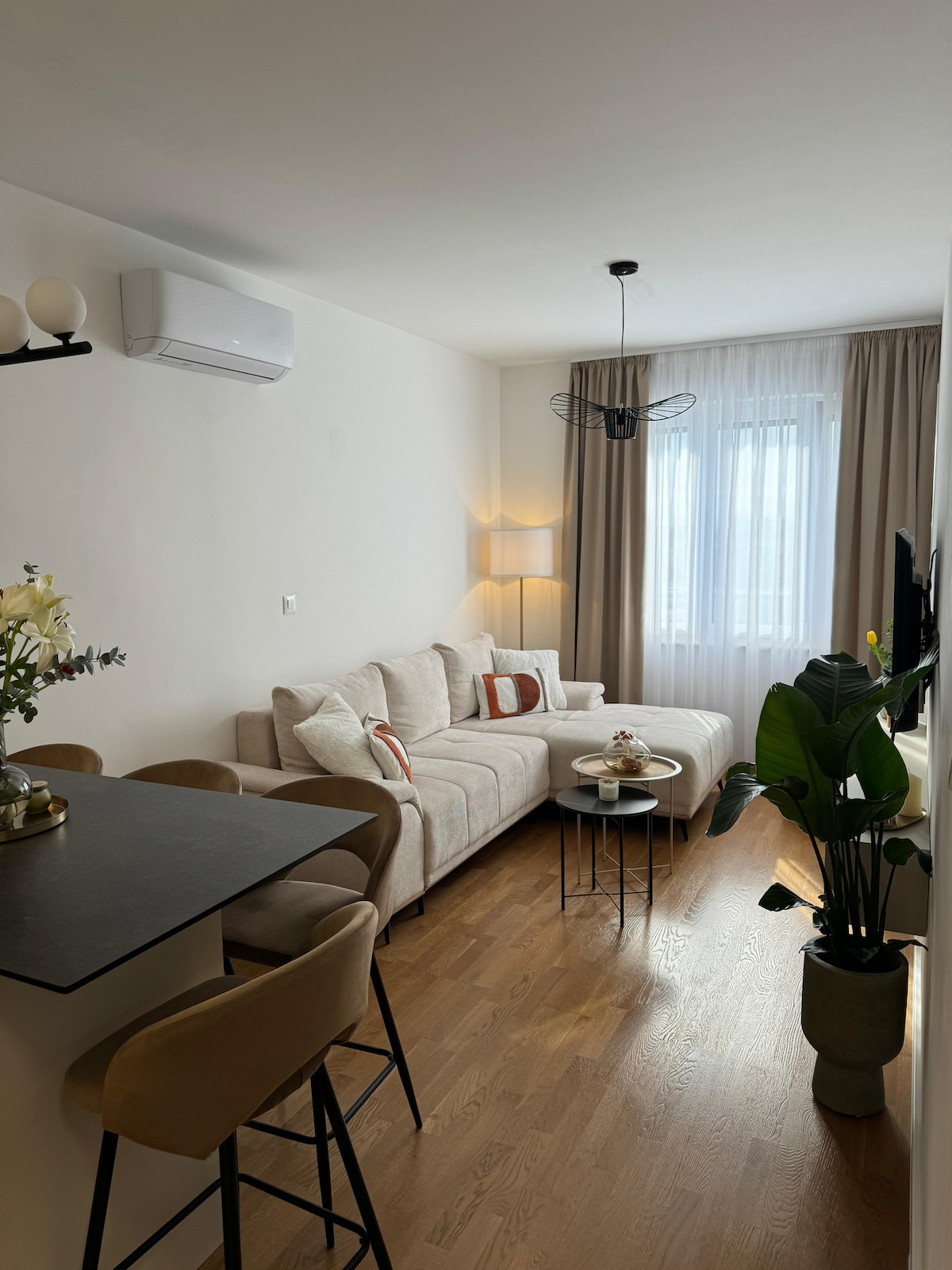 Moderan i udoban stan savršen za parove, sa mogućnošću smeštaja porodice sa najviše 2 deteta. Gosti imaju pristup privatnoj unutrašnjoj garaži sa rolo-vratima radi dodatne praktičnosti i bezbednosti. Popularna plaža Žnjan, koja nudi brojne sportske aktivnosti, kafiće i restorane, udaljena je samo 5 minuta vožnje od stana. Stan je potpuno opremljen za opuštajući boravak i predstavlja odličnu bazu za istraživanje grada i uživanje u prelepoj obali.