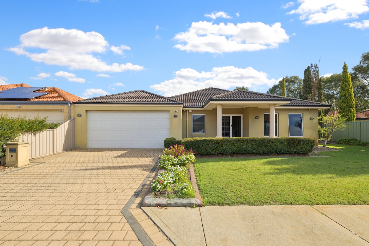 Potpuno namještena, trosobna kuća, uključuje toaletne potrepštine, posteljinu, mašinu za pranje veša i sušilicu, dobro opremljenu kuhinju, neograničen Wi-Fi. Sve je pažljivo razmotreno za jednostavan i jednostavan boravak. Do najbliže autobuske stanice stiže se peške peške 3 min vožnje do lokalnog supermarketa 3 min vožnje do Spenser Village Food Court 4 min vožnje do najbliže železničke stanice 8 minuta vožnje do Vestfild Carousel 16 minuta vožnje do Univerziteta Kurtin 18 minuta vožnje do aerodroma 24 minuta do Labudove doline 27 minuta vožnje do Pertovog CBD-a