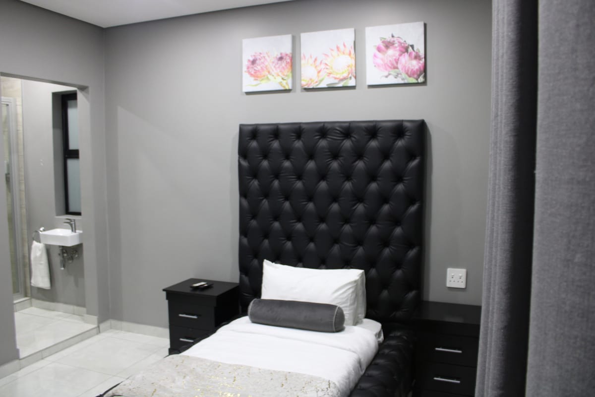 Uživajte u glamuru ovog elegantnog, luksuznog utočišta. Moderan luksuzni apartman sa tuš kabinom, ormarom i WC-om u prahu. Samo 15 minuta vožnje od aerodroma O R Tambo možete da se nađete na ivici Labudovog jezera. Možete podići noge i uživati u mirnom okruženju na jezeru. Posmatranje ptica je obavezno, pauna i patke koje plivaju pored vas. Mesto gde možete da se oslobodite gradskog stresa. Ali dovoljno blizu da i dalje budete razdvojeni od gužve.