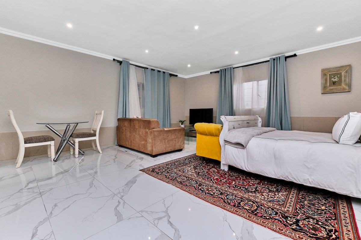 Besprekorno čist, elegantan i pristupačan studio apartman idealan za kratak ili duži boravak. Uživajte u besplatnom bezbednom parkingu, potpunoj privatnosti i tihoj spavaćoj sobi sa izuzetno udobnim bračnim krevetom za mirne noći. Savršeno smeštena na samo 6 km od Sandton City-ja, nekoliko kilometara od autoputa do aerodroma OR Tambo, luksuznih restorana, zabave i sadržaja. Nalazi se u bezbednom, naprednom području sa patrolnim obezbeđenjem, nudi bezbrižnost i praktičnost na vašem pragu.