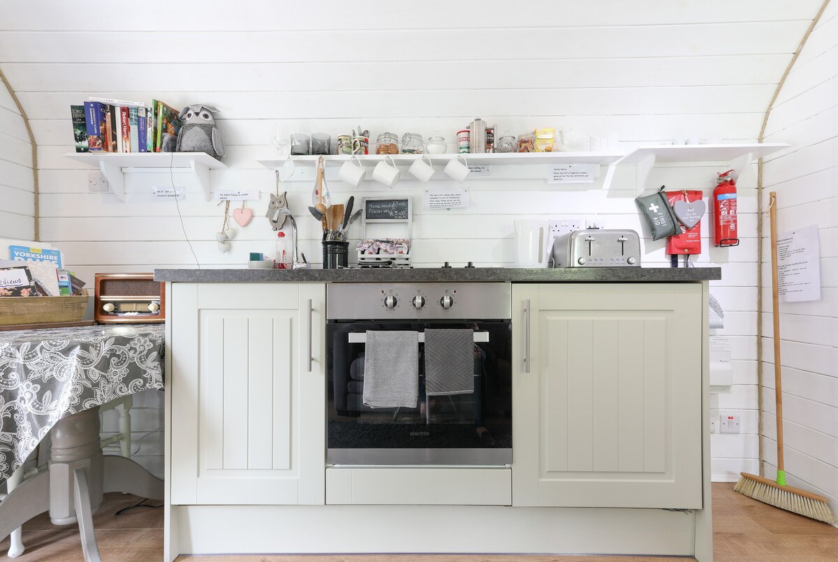 Self contained. heated luxury pod. 0.6 miles from Ilkley Centre, 40 mins to Harrogate Conference Centre and Yorkshire Show. Odmorite se od svega i digitalnu detoksikaciju, u ovoj luksuznoj kompaktnoj posudi sa grejanjem, sa sopstvenom moderno opremljenom kuhinjom, kupatilom, luksuznim bračnim krevetom, kvalitetnom posteljinom, ćebadima, ogrtačima, peškirima, roletnama za zamračivanje, kaučem na razvlačenje i sopstvenim dvorištem! Provedite 2 ili više divnih noći u jednom od mojih jedinstvenih mahuna. Prijavite se u bilo kom trenutku nakon 15:00 h uz samouslužni ulazak.