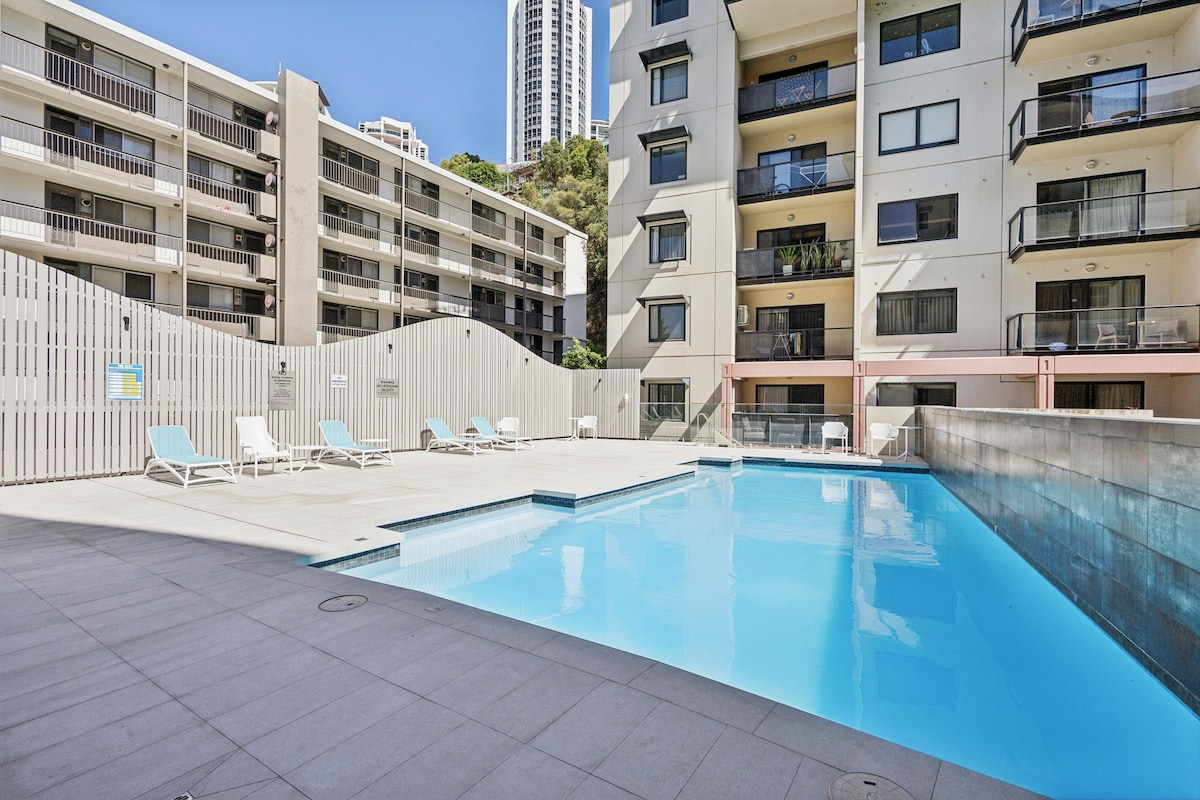 SAVRŠENA LOKACIJA GRADA!!! Boravite u srcu Pert Sitija, odmah ispod predivnog King 's Parka u Pertu i na pješačkoj udaljenosti od CBD-a, izložbenog i konferencijskog centra Perta i Elizabet Kvej. Imajte najbolje restorane i barove u Pertu na pragu! Uložili smo naše srce i dušu u ovaj prelijepi privatni dvosobni stan koji se nalazi u sklopu odmarališta Mounts Bay Village i nadamo se da ćete uživati u ovom prostoru onoliko koliko smo uživali u njegovom kreiranju za vas.