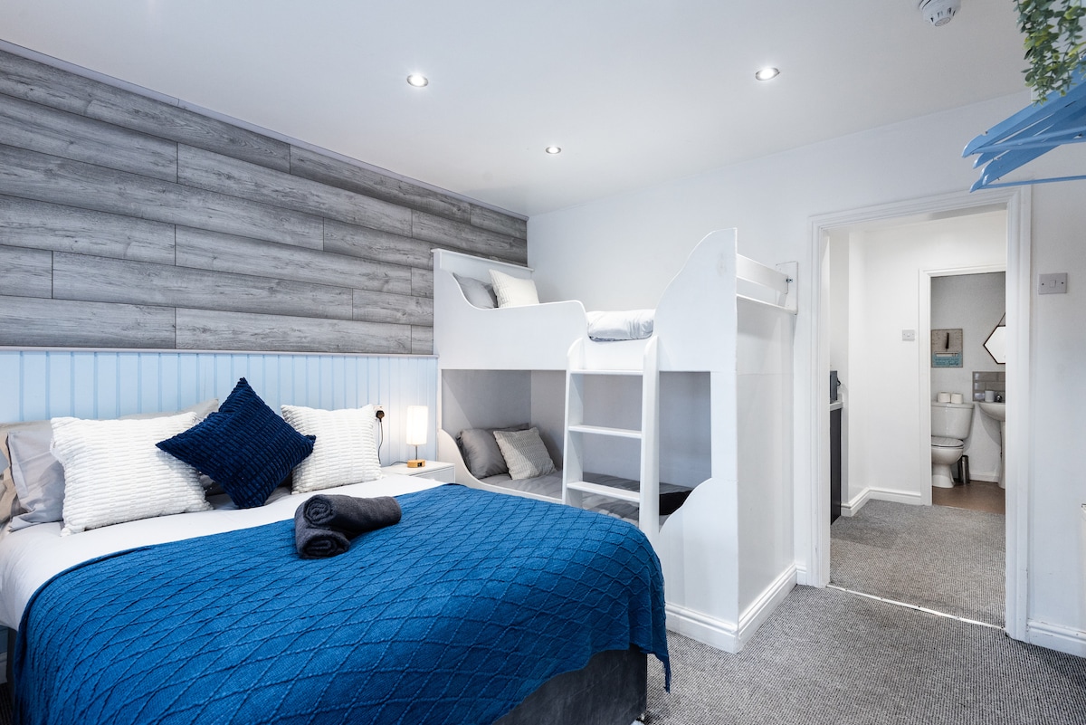 Enjoy a stylish stay in this elegant two-bedroom, upper floor apartment. The open-plan kitchen, dining, and living area offers a bright, seamless space for relaxing or entertaining, while the private balcony provides the perfect spot to unwind. Designed for comfort and convenience, the apartment includes self-catering facilities, onsite laundry, complimentary WiFi, and dedicated parking. Only a 5 minute drive from Blackpool Tower!