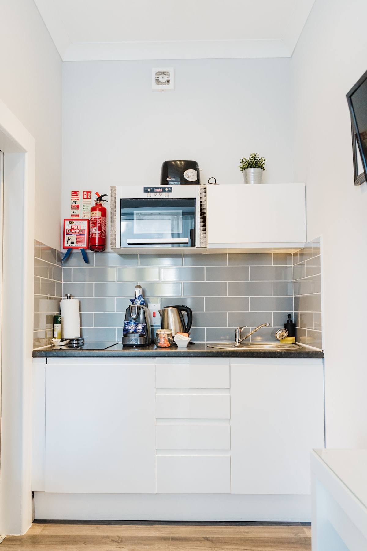 Dvokrevetna soba u hotelu The Wellington – za 2 osobe Ova svetla i udobna soba u apart-hotelu Wellington savršena je za parove ili osobe koje putuju same. Otvoreni raspored sadrži udoban bračni krevet, što stvara opuštajući prostor za odmor. Soba ima privatno kupatilo i praktičnu čajnu kuhinju, opremljenu mikrotalasnom rernom, fritezom na vrući vazduh, frižiderom i posuđem – idealno za pripremu laganih obroka ili užina tokom vašeg boravka. Obezbeđena je čista posteljina i peškiri za bezbrižan i udoban boravak.
