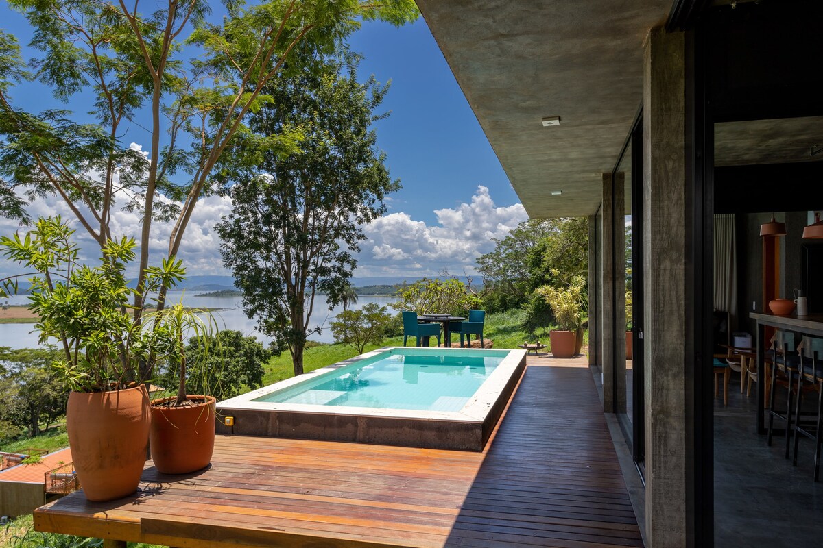 Chalé com Vista para a Serra da Canastra. Imagine acordar com o som da natureza e um nascer do sol inesquecível bem na sua janela. Nosso chalé, recém-construído, fica de frente para a Serra da Canastra e oferece uma experiência única de conexão com a natureza — sem abrir mão do conforto. Ideal para casais, o espaço conta com: Cama aconchegante Banheira Ar-condicionado Cozinha equipada Banheiro privativo Acesso direto à represa Wi-Fi Banheira com aquecedor solar*