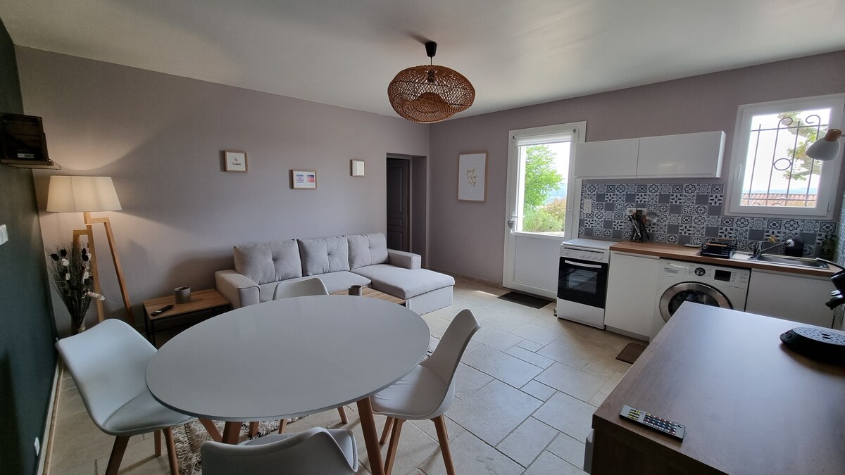 Napunite baterije u stanu u prizemlju kuće otvorene prema velikom dvorištu s pogledom na okolna brda. Nalazi se u srcu ulice Drôme des Collines, 50 minuta južno od Liona, 5 minuta od Châteauneuf de Galaure i 10 minuta od Palais Idéal du Facteur Cheval u Hauterivesu, 20 minuta od vinograda Crozes Hermitage. Uživajte u okruženju u kojem se spajaju spokoj i odlična priroda, pogodna za šetnje, vožnju biciklom, sa Vercorsom i planinama na vidiku.