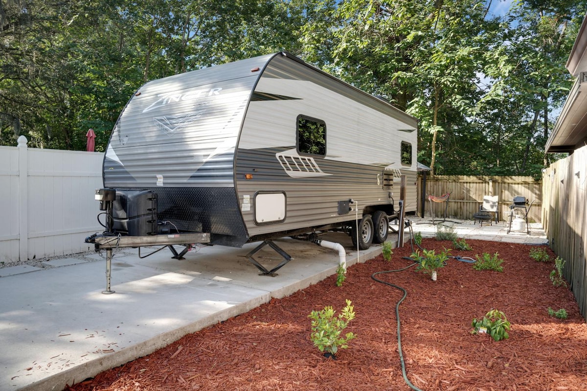 Smješten u Orange Park FL , ovaj ruralni, rustikalni, šareni smještaj može biti vaš dom daleko od doma! Gosti mogu da uživaju u šumovitom i starinskom pejzažu koji podsjeća na jednostavnija vremena. Određeno parking mjesto je označeno znakom tri cvijeća s lijeve strane prilaza. Gosti će takođe imati sopstveni prostor za sjedenje. Imajte na umu da imamo još jedan smještaj: Retreat Mobile Camper (nazad do kuće) i apartman za goste (povezan s kućom) u objektu! , sa svime privatnim Hvala