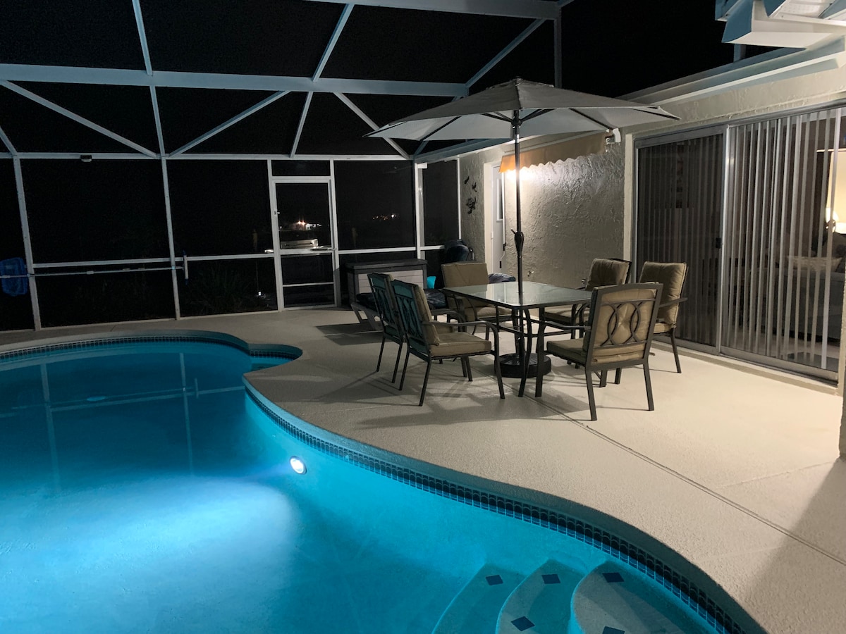 Welcome to your Spacious Getaway! Exterior Features: ★ LED Lights in Pool and on Pool Cage ★ Fenced-in yard & Fire-pit ★ Doorbell & Driveway Camera for safety Interior Features: ★ Ping Pong Table ★Large Shower in Master Bathroom ★ROKU on each TV Extras: ★ Heated Pool up to 95 Degrees - $40 per day (Pool Water is normally at 75 degrees without the Pool Heater) ⚠️ Pet-Friendly, but the pet must be added to the reservation ($75 Pet fee)⚠️ {Willing to Negotiate Monthly Prices}
