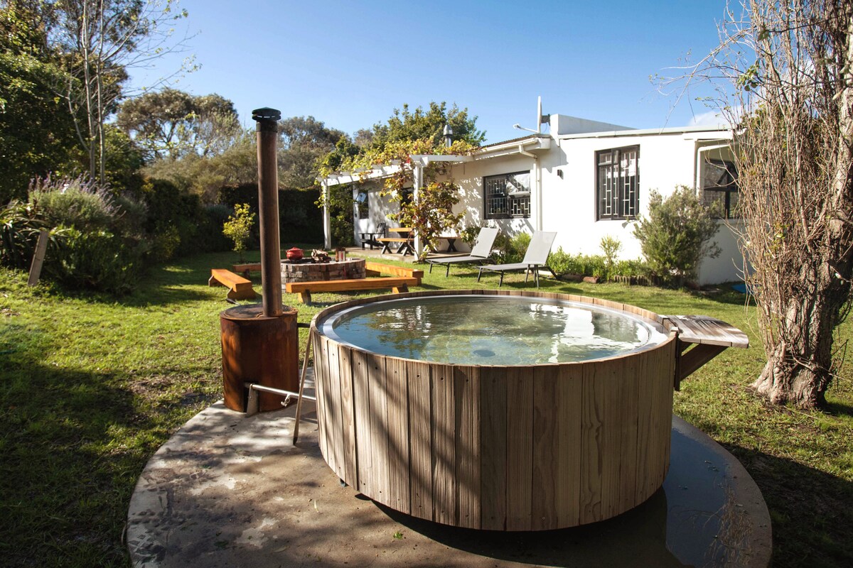 Stay at Cyphia Close Cabins in Hout Bay, in a unique, micro wooden cabin with magnificent outdoor spaces, sea & mountain views, surrounded by beaches & sanddunes while still close to town/CBD Features a queen sized bed, en suite bathroom, kitchen, work-from-home, deck & open firepit. Off street parking Internet: upto 500MB down/200M up. Loadshedding backup Not secluded; we have other cabins & animals onsite Really small & no space for large luggage. Good for a few nights and limited cooking