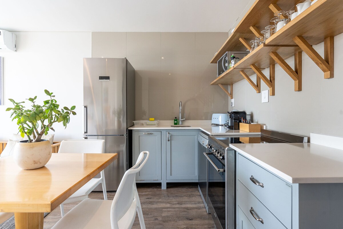 Just five minutes from Camps Bay beach, Vive Lodge is a stylish ground-floor apartment designed for laid-back coastal living. It features a king-sized bed, air-conditioning, en-suite bathroom, and a living area with dining for two. The kitchenette includes a Nespresso machine, kettle, microwave, and bar fridge. Step into your private garden with sun loungers, a shower, and a BBQ—ideal for relaxing. High-speed WiFi and an inverter ensure seamless connectivity and comfort during load shedding.