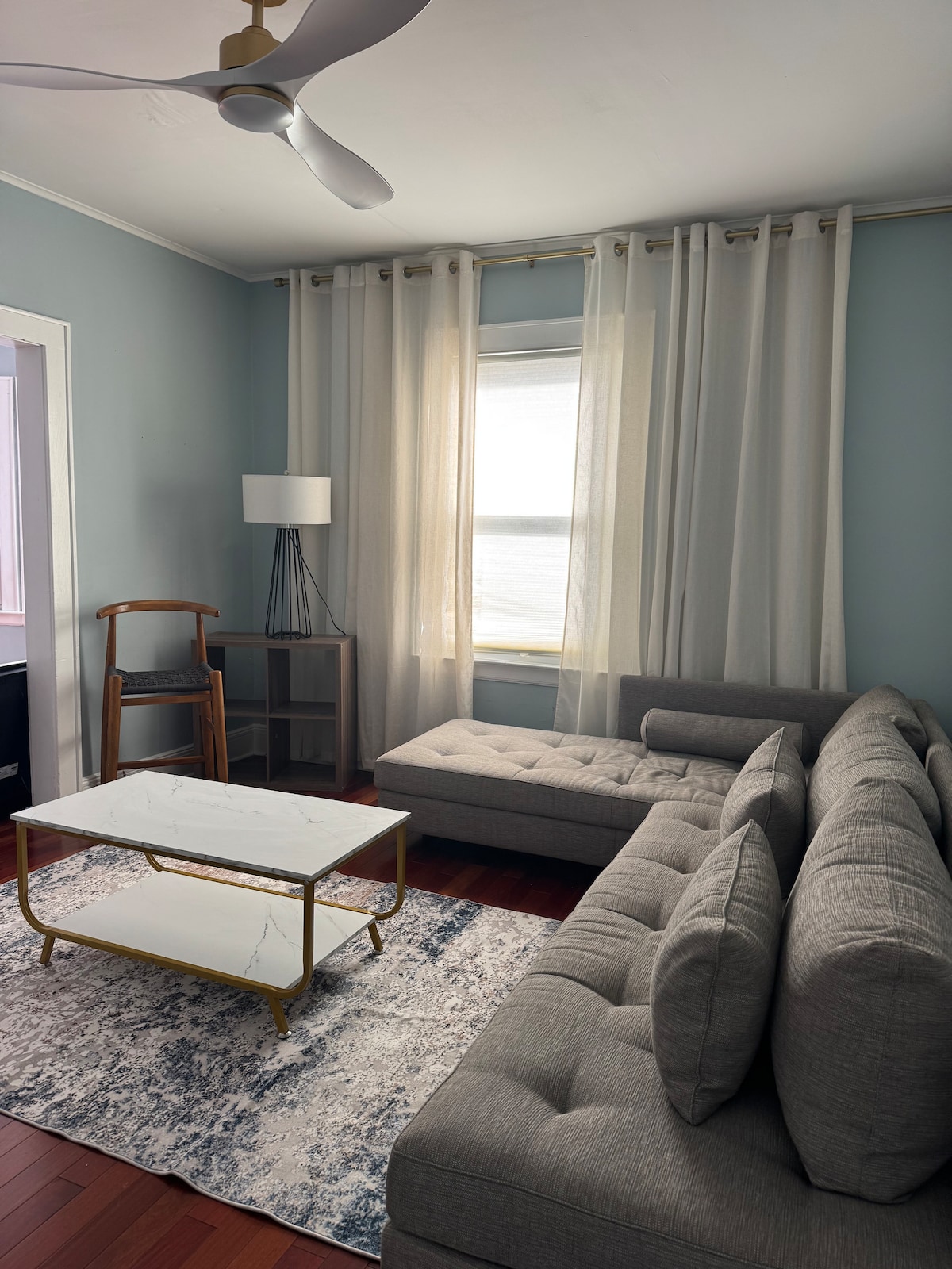 Privatni studio apartman - prizemlje uklj. Zadnje dvorište sa *parkingom. Uključuje bračni krevet, kauč na razvlačenje, privatno kupatilo, čajnu kuhinju, sto i stolice, ormar, mikrotalasnu pećnicu, aparat za kafu, toster, frižider, fen za kosu, Smart TV, Wi-Fi, grijanje, međunarodni aerodrom Njuark, tržni centar Džerzi Garden i 10 minuta vožnje. Njujork 30 minuta. KRATKA ŠETNJA do: željezničke stanice, Univerziteta Kean, I-HOP, Vendi, Tako Bel, DD, Porodični dolar itd. *Parking mjesto: putnički automobil i terensko vozilo. Takođe, parking na ulici.