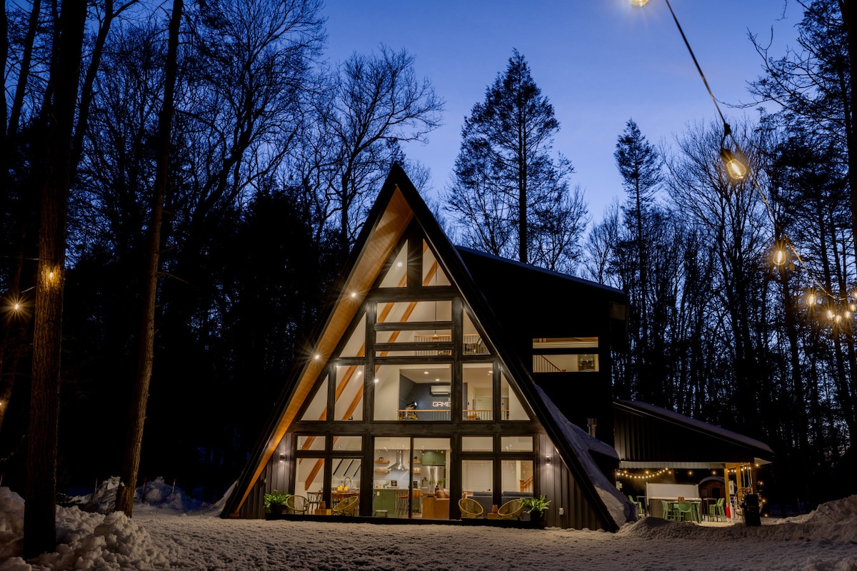 Kuća u obliku slova A sa pogledom na jezero | Hidromasažna kada pod zvezdama | Xbox | Moderna