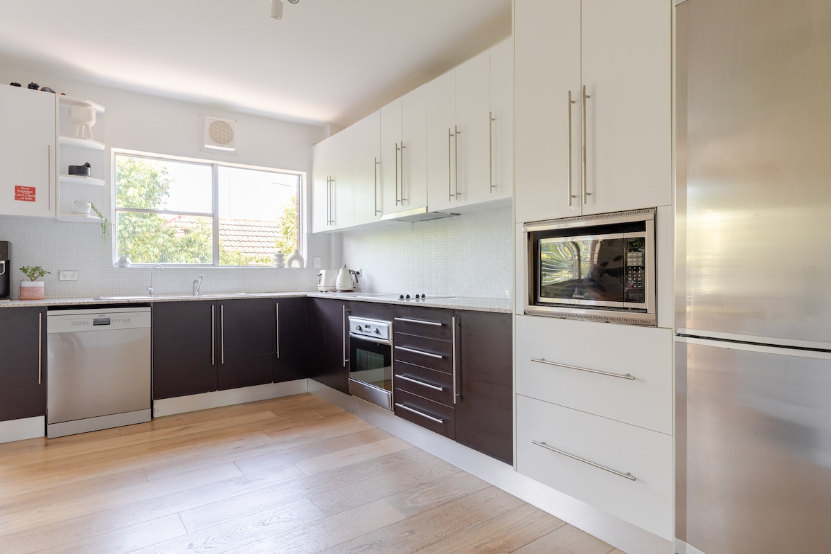 Uživajte u suncu i preplavljujući ovaj prostrani stan sa garažom u prizemlju. S minimalnim modernim dizajnom bez nereda. Nakon što završite dan, uživajte u roštilju na balkonu ili uživajte u kupanju u luksuznoj kadi. Uključuje 5G internet i sadržaje kućne kancelarije. Coogee nudi suštinski australijski način života na plaži. Udaljeni smo nekoliko minuta od svjetlucave plaže, veličanstvenih šetnji uz obalu i morskog rezervata, dok smo 5 minuta hoda do glavnih restorana, prodavnica i barova.