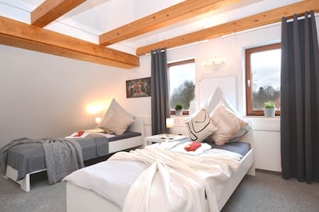 Dobro došli 👋🏽 Kuća DREAMZZ sa pogledom na baštu u Koburgu nudi 120 m² prostora za 5 osoba. ✔️ Dvije spavaće sobe ✔️ Moderno kupatilo ✔️ Otvorena kuhinja ✔️ Svijetli dnevni boravak i trpezarija sa klavirom ✔️ Igre, knjige i TV za prijatne večeri Uživajte u pogledu na baštu 🌳 i privatnom parkingu ispred vrata🅿️. Zahvaljujući centralnoj lokaciji, do dvorišnog vrta, starog grada, restorana i atrakcija možete lako doći za nekoliko minuta hoda 📍