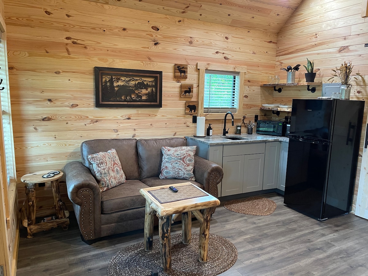 Novoizgrađena mala brvnara (300 sf) sa 1 krevetom pune veličine, potpuno opremljena Loveseatom, TV-om u spavaćoj sobi i dnevnom boravku. Kuhinja sadrži frižider, sudoperu, aparat za kafu, rešetku, ringlu, mali izbor posuđa i sve kuhinjsko posuđe. Ako tražite samo mjesto da se opustite i uživate u Mauntin Vjuu, ovo je savršeno. Samo ponesi svoju odeću. Tražimo da se kamin koristi samo u periodu od novembra do marta.