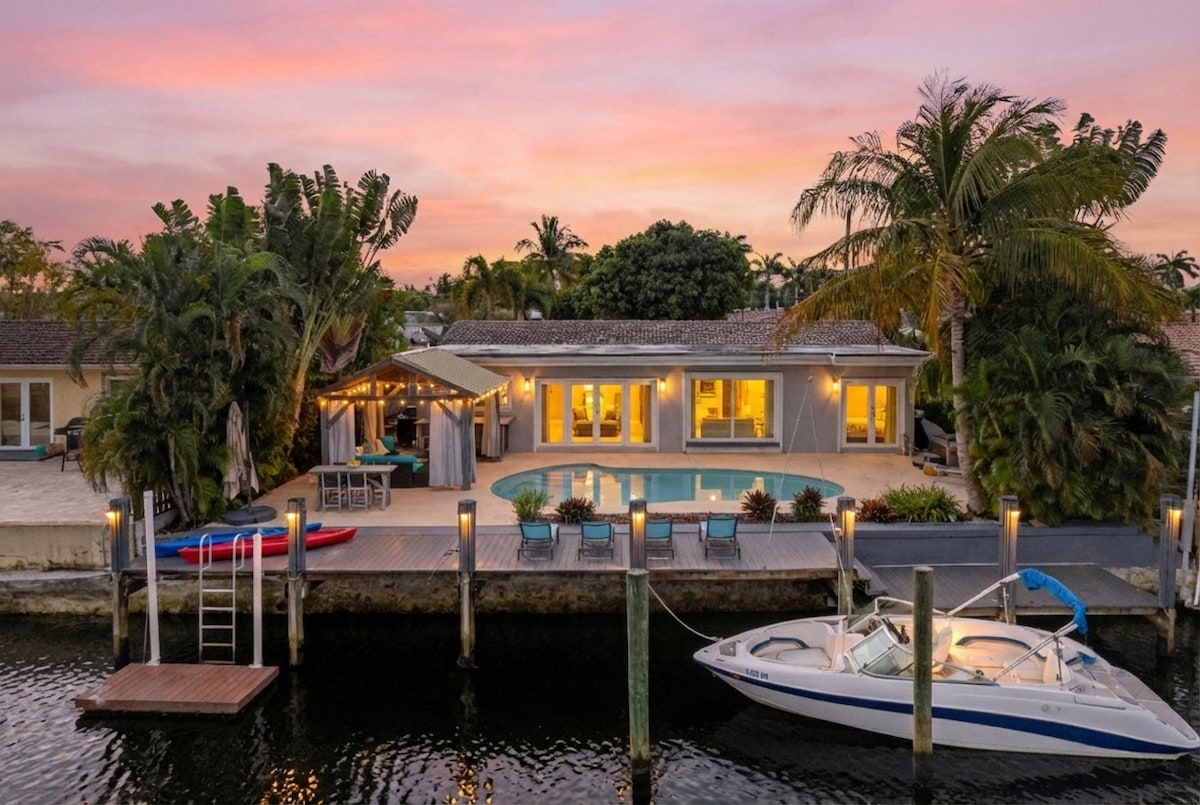 This South Florida canal home located minutes from the beach is nestled in a quiet neighborhood surrounded by water and parks with one way in and out. It sits and the end of a cul-de-sac on it own private road where privacy is at its best! Newly remodeled 3 bedroom 2 bath house with Heated pool. Explore Florida with provided kayaks in the canal that leads to the ocean. Neighborhood parks include, beach volleyball, basketball, nature trails, exercise routes and benches, RV parking, and more.