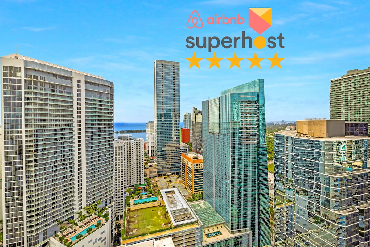 BRIKEL U STILU!! Vrhunski stan na 42. spratu. Nevjerovatan pogled, ukusan dekor, penthaus. Ovo je stan koji tražite. Idealno za porodice, poslovne rukovodioce i one koji traže odmor. Prošetajte do centra grada Brikela (tržnog centra) sa luksuznim prodavnicama i restoranima. ŽIVOTOPISI i 7-11 udaljeni su nekoliko koraka od kojih možete da nabavite svu osnovnu opremu. 10 minuta vožnje Uberom do Vinvuda, Saut Biča i Dizajnerskog okruga. Uključuje bazen, teretanu i igraonicu. Ovo je vaše mjesto. Dobro došli u Majami!