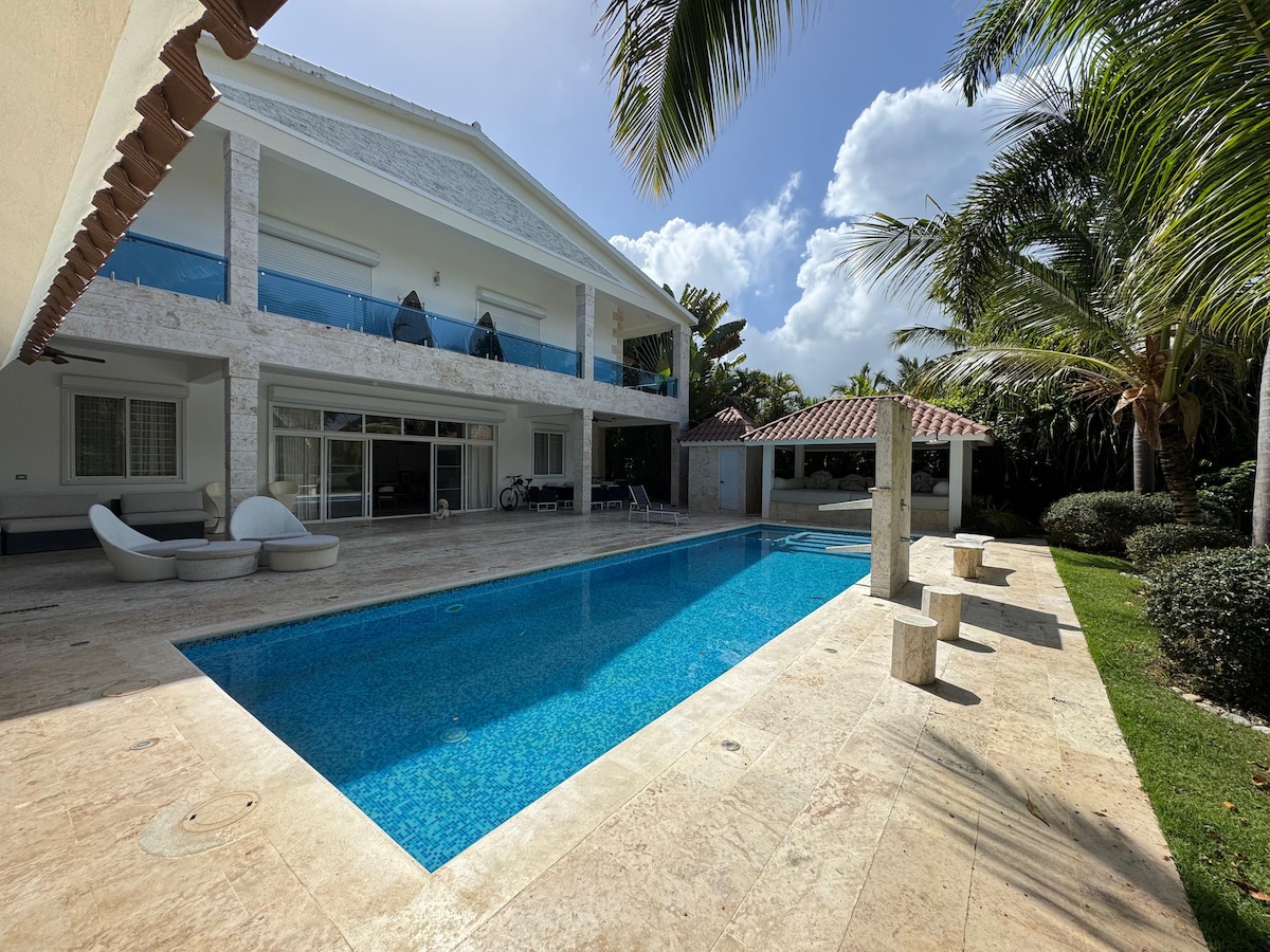 Uživajte u miru ove šarmantne vile u Punta Kani, samo 5 minuta od plaže, koja se nalazi u sklopu golf zajednice sa klupskom kućom, restoranom i barom. Sa 4 spavaće sobe, privatnim bazenom, prelijepim dvorištem sa pristupom terenu za golf i terasom sa roštiljem, to je savršeno mjesto za opuštanje. Bićete blizu najboljih restorana i barova, a na samo 25 minuta od aerodroma. Dođite i uživajte u sjajnom vremenu i prelepim plažama Punta Kane sa porodicom ili prijateljima!