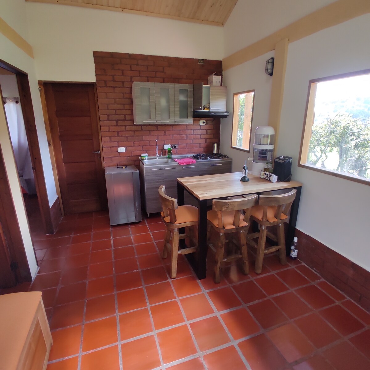 Predivna brvnara 1 sat od Bogote, izgrađena po nivoima koji prate planinski teren, sa prelepim pogledom na dolinu Nemocón i Neusa, okružena prirodom, voćem i domaćim životinjama. Udobni prostori sa odličnim prirodnim osvetljenjem omogućavaju divan odmor i trenutak isključivanja kao porodica. Možete da sedite oko grejanja kamina, delite društvene igre, pripremate bogate recepte i gledate u pejzaž dok uživate u kontaktu sa prirodom.