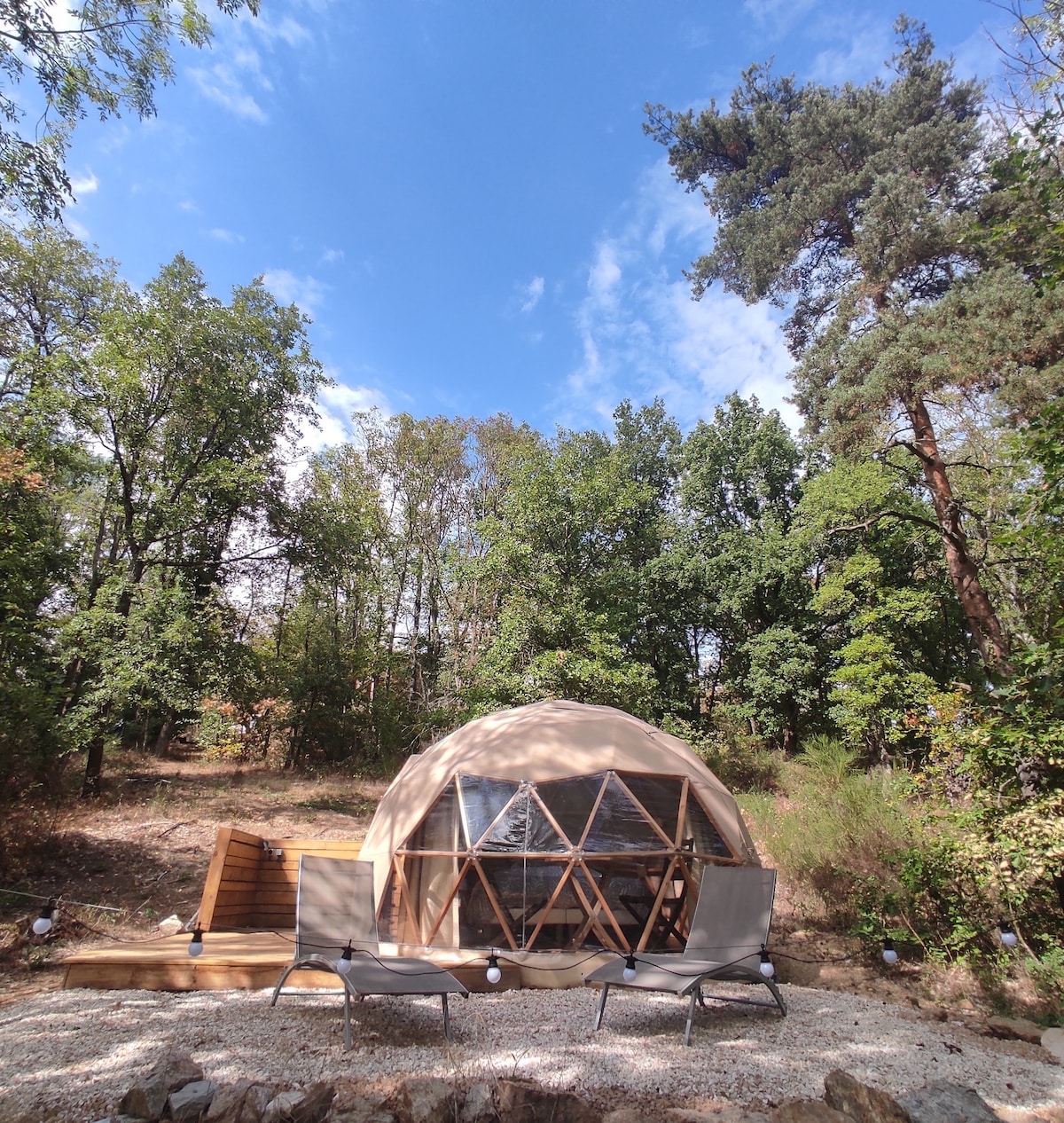 Idealno je da se nalazi manje od 20 km od Liona i 5 minuta od A89 (Pariz, Bordo, Marselj itd.), uživajte u noći u srcu prirode u „zelenim plućima“ opštine Liona. Tokom dana uživajte u planinarenju, planinskom biciklizmu ili stazama dostupnim nekoliko stotina metara od kupole. A uveče, uživajte u flori i fauni koja vas okružuje. Doručak je dostupan uz doplatu (obratite nam se)
